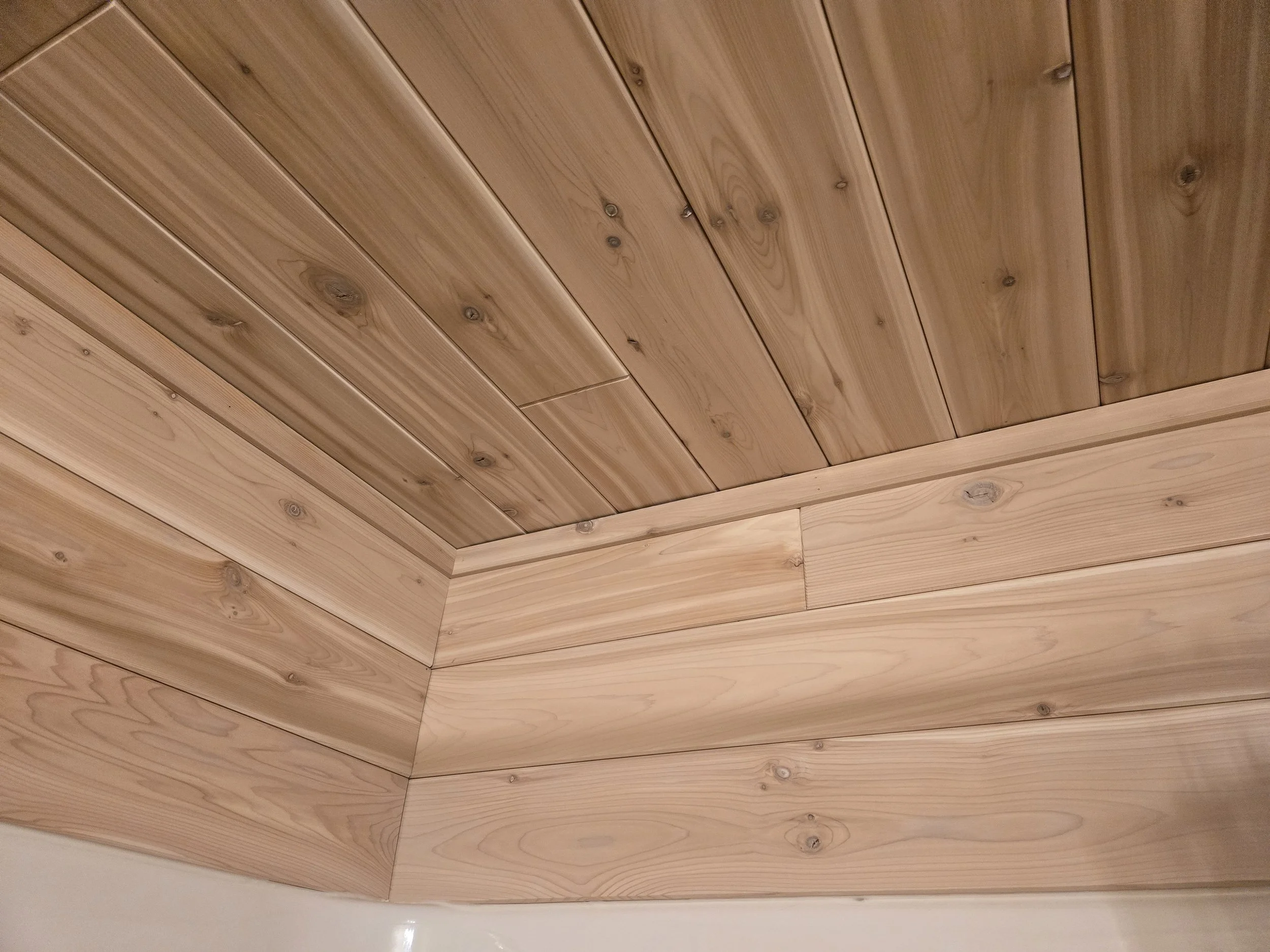 Aspen V-Groove Paneling for a sauna.